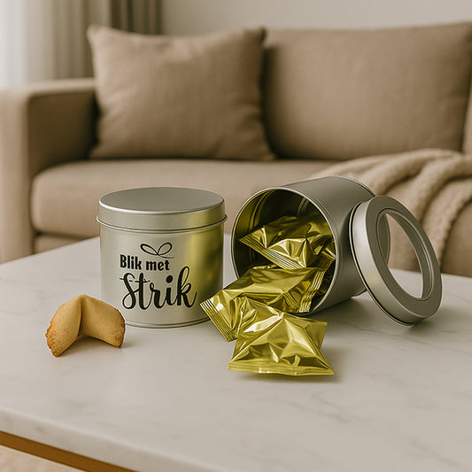 AanbiedingBlik met strik - 50 gelukskoekjes