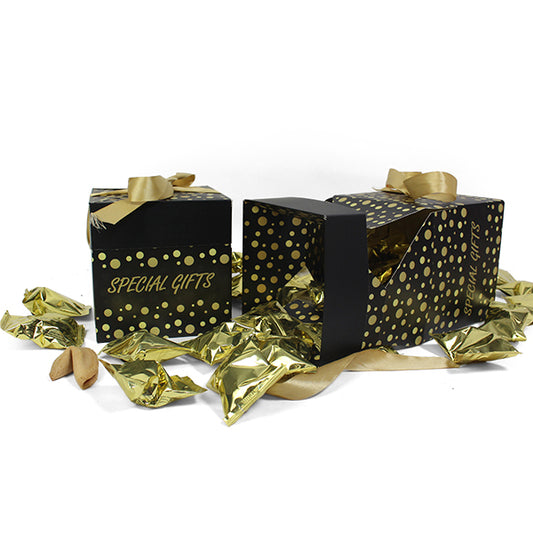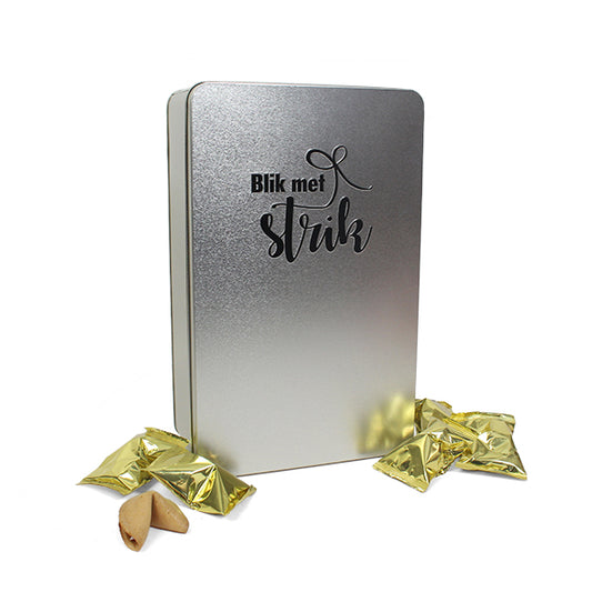 Gelukskoekjes in feestelijke doos - 50 stuks goud en zilver
