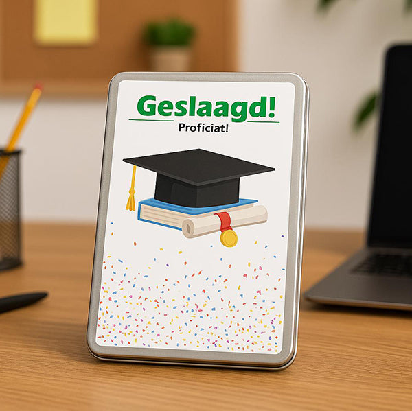Perfect blik om je contracten of diploma's in op te slaan. Je kunt er ook nog voor kiezen om het deksel te bedrukken. Het blik wordt gesloten met een scharnierdeksel.