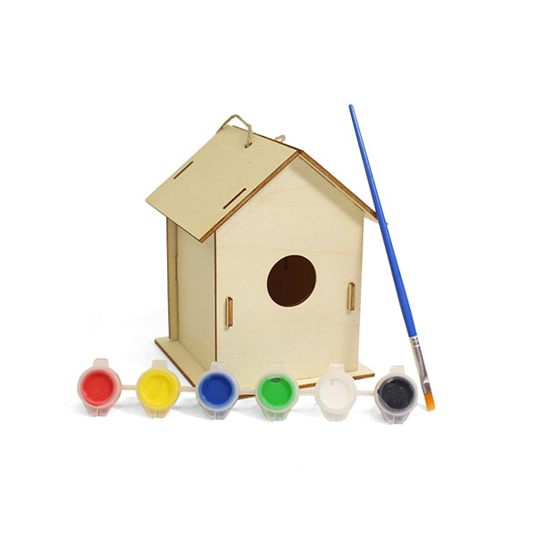 Een leuk vogelhuisje die je ook nog eens helemaal zelf kunt verven. Zet eerst het vogelhuisje in elkaar en breng daarna de kleur aan zoals jij je eigen vogelhuisje wilt schilderen. Leuk om op te hangen in de tuin en als nieuw thuis voor de vogeltjes.