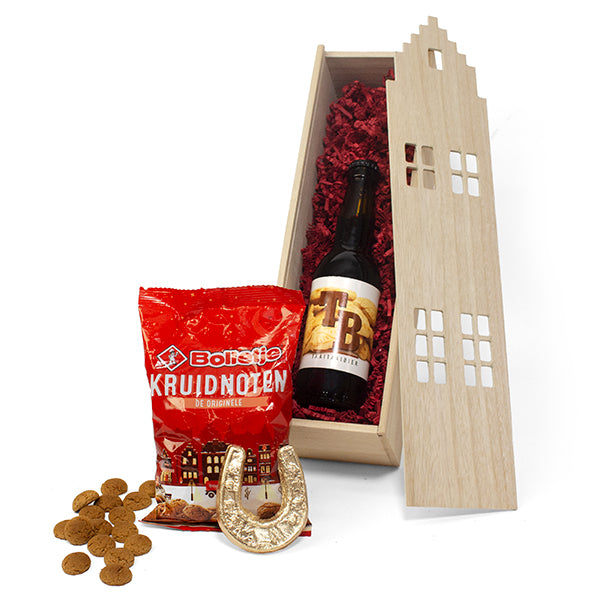 Daar wordt aan de deur geklopt, wie zou dat zijn?! Dat is bierpiet! Hij heeft voor dit sinterklaasfeest een speciaal bier ontwikkeld, Sinterklaasbier. Haal het pietenhuis naar binnen en geniet van dit speciale bier met wat heerlijke kruidnoten en een chocolade hoefijzer.